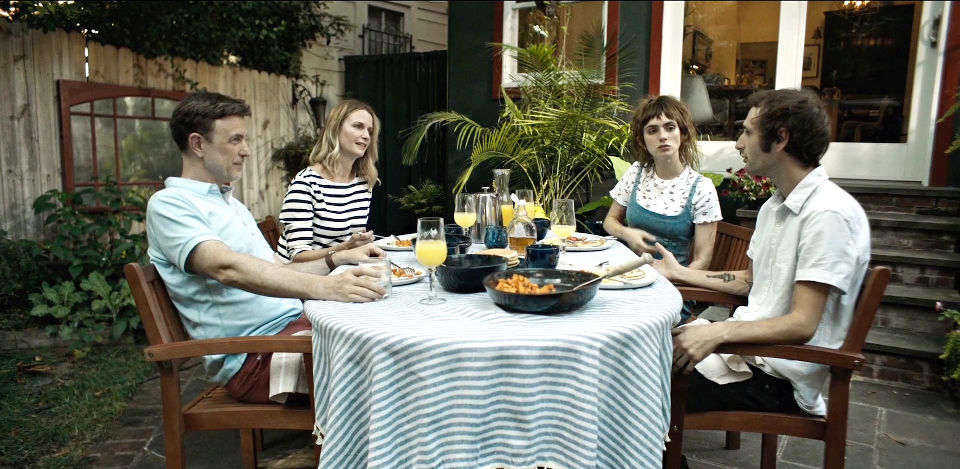 In this scene from the award-winnning 2022 feature film, I grill my daughter's boyfriend (Hopper Jack Penn). Also stars Rosanna Arquette.