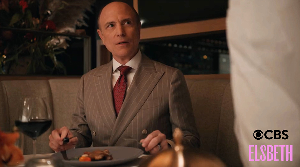 These scenes from Elsbeth #205 with guest star Pamela Adlon feature my character Mr. Montebello, CEO of POMM industries and a discerning food critic